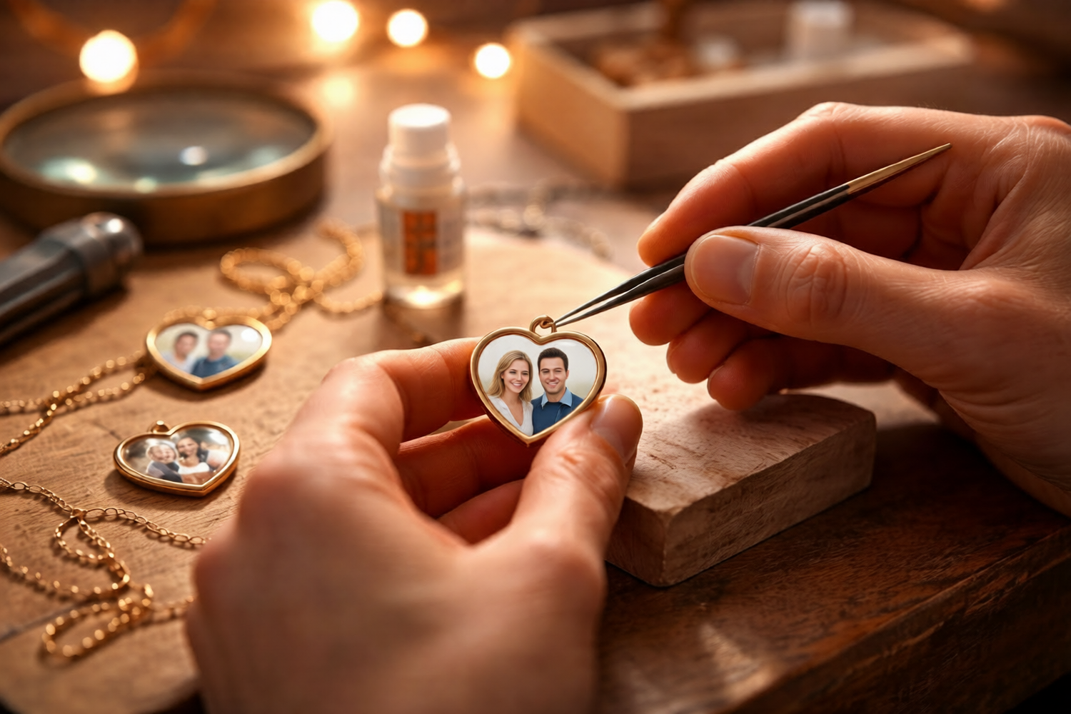 We professionally retouch and crop your photo to ensure it fits perfectly inside the pendant.