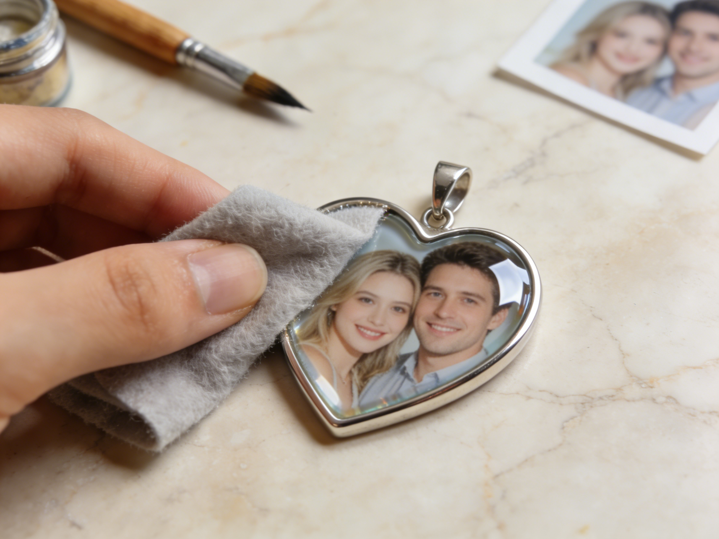 For the best results, use a high-resolution photo with clear lighting. Make sure the subject is centered and not cropped too closely, so our team has enough space to perfectly fit it into the pendant.